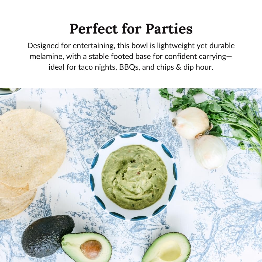 - Fresh and stylish 6" bowl featuring a coastal stripe pattern, perfect for serving chips, dip, and snacks in style.