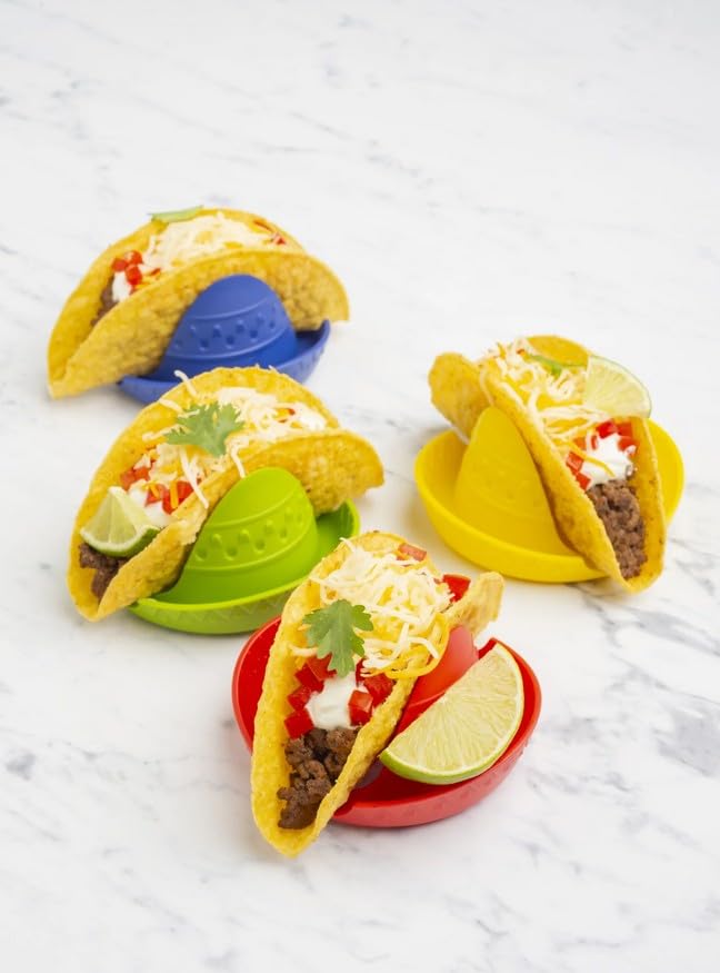 - Set of 4 in Vibrant Colors for a Lively Table Presentation: Comes in a set of four colorful taco holders, each in a different bright shade, making it perfect for sharing meals and adding visual excitement to your table setup