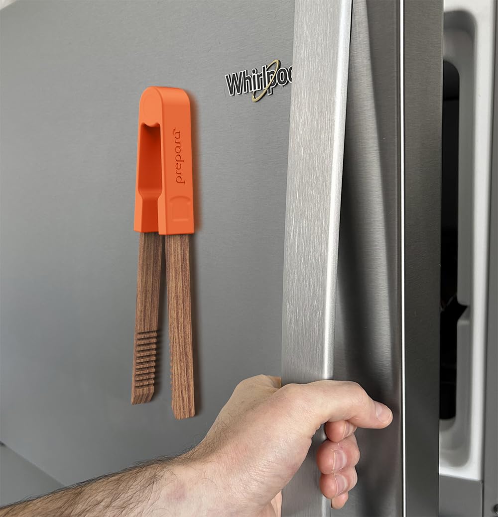 Prepara Toaster Tongs, 8 Inch, Wood/Orange—